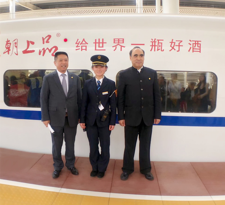 2018年4月18日,由成都鐵路局貴陽(yáng)客運(yùn)段值乘的3組貴渝、滬昆、貴廣線(xiàn)高鐵動(dòng)車(chē)組“天朝上品號(hào)”品牌專(zhuān)列首發(fā)式在貴陽(yáng)北站隆重舉行。天朝上品酒業(yè)副董事長(zhǎng)兼總裁黃永毅,副總裁江貽燦,總裁助理曾祥坤、韓萍,各大區(qū)負(fù)責(zé)人,成鐵傳媒貴州分公司總經(jīng)理丁航,貴州新黑馬傳媒董事長(zhǎng)毛婧、總經(jīng)理越飛,人人投創(chuàng)始人鄭林、聯(lián)合創(chuàng)始人王攀,北京首汽集團(tuán)旅游車(chē)公司總經(jīng)理朱樹(shù)增,以及聞?dòng)嵹s來(lái)的全國(guó)經(jīng)銷(xiāo)商代表等共同出席首發(fā)式。