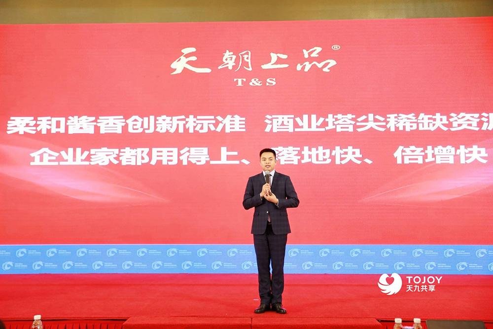 曾祥坤總助詳細介紹了天朝上品全國聯(lián)營項目。天朝上品是茅臺技開公司的核心戰(zhàn)略品牌,經(jīng)過多年的發(fā)展與耕耘,得到市場和消費者的廣泛認可,與天九共享集團合作以來,通過線上線下相結(jié)合方式,積極推進天朝上品全國聯(lián)營項目,助力企業(yè)家成功跨界,賦能企業(yè)快速成長和發(fā)展。今年雖然受突如其來的疫情影響,但是天朝上品品牌熱度不減反升,簽約加盟的客戶紛至沓來,新開業(yè)的專賣店銷售火爆,各地經(jīng)銷商自主舉辦品鑒會等線下活動,收益頗豐,天朝上品將繼續(xù)與天九共享集團大力推動全國聯(lián)營項目,聯(lián)合全國優(yōu)秀企業(yè)家踐行“給世界一瓶好酒”的承諾,共享柔和醬香資源,共同締造世界級品牌。