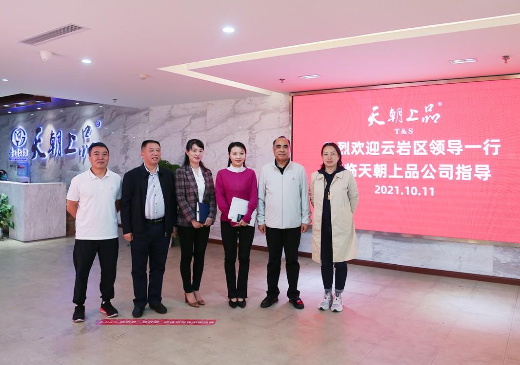 2021年10月11日,貴陽市云巖區副區長蔡佳麗、招商局局長萬軼一行蒞臨天朝上品酒業調研,參觀了天朝上品酒業總部辦公區和形象展示店,聽取了天朝上品企業發展、品牌建設情況介紹。黃永毅總裁表示,“給世界一瓶好酒”是天朝上品的企業使命和不變承諾,十多年來我們一直本著為消費者送去健康好酒的理念,走創新營銷發展新路,讓更多的消費者喝上天朝上品酒,愛上天朝上品品牌。