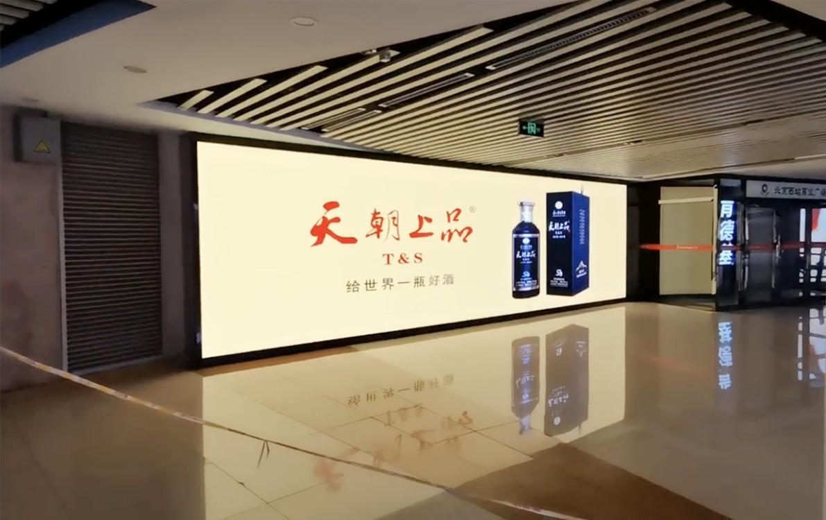 國慶期間,央視旗下中外名人文化傳媒發力,隆重推送天朝上品商務5G酒巨幅廣告亮相北京西站到達大廳27塊3D大屏,以每天單屏180次的高頻次進行品牌宣傳。