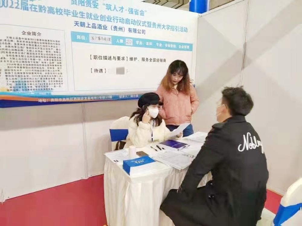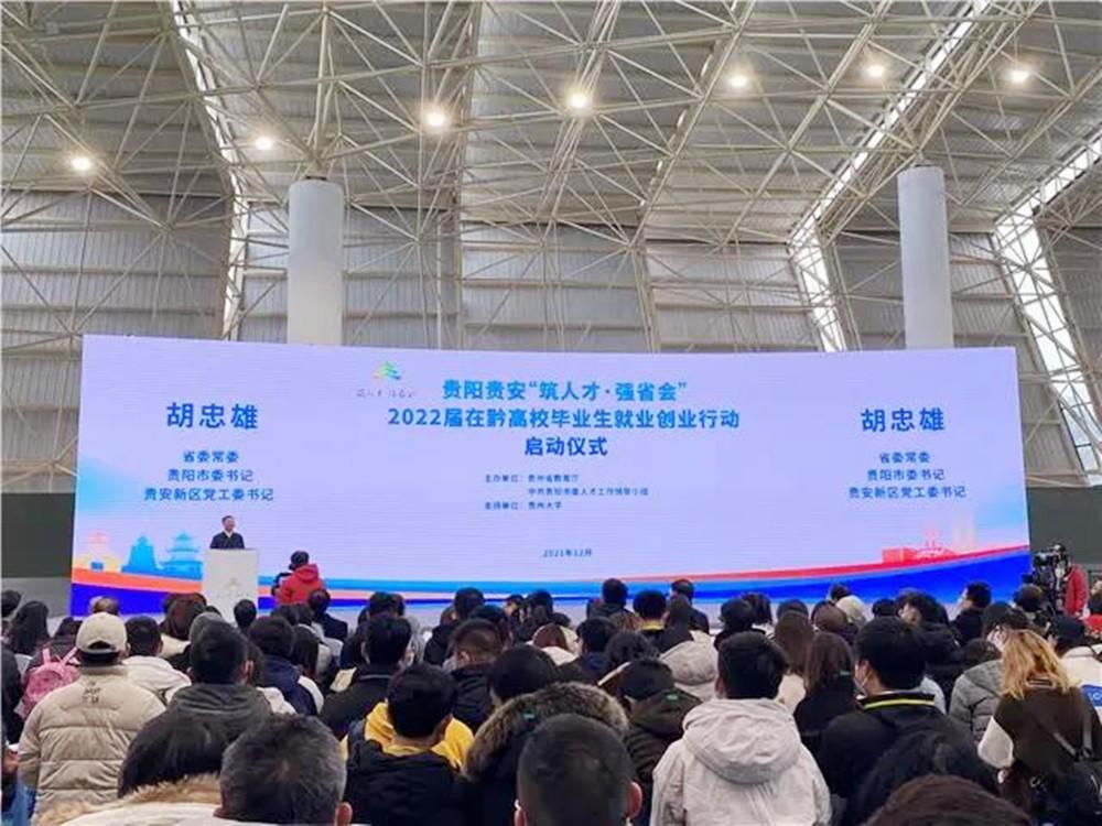 12月16日,貴陽貴安“筑人才·強省會”2022屆在黔高校畢業生就業創業行動啟動儀式暨貴州大學招引活動在貴州大學舉行,省委常委、貴陽市委書記、貴安新區黨工委書記胡忠雄發表重要講話。本次活動吸引了包括天朝上品酒業在內的1091家在筑央企制造業企業、省屬國企和貴陽貴安重點產業企業參與招聘。