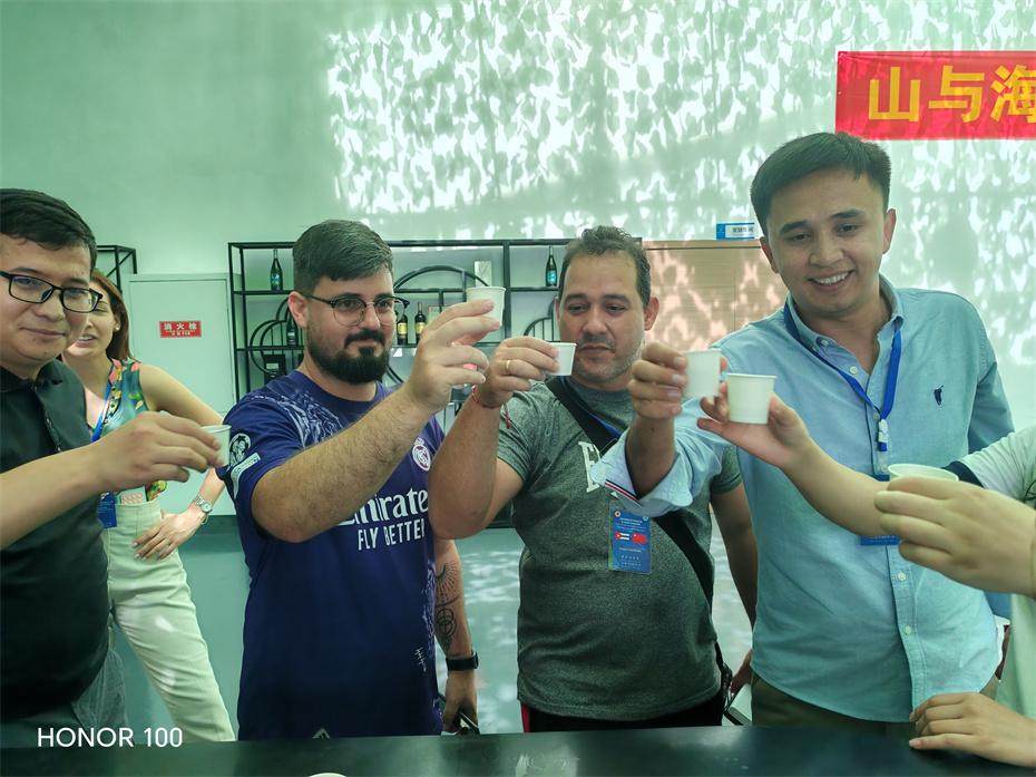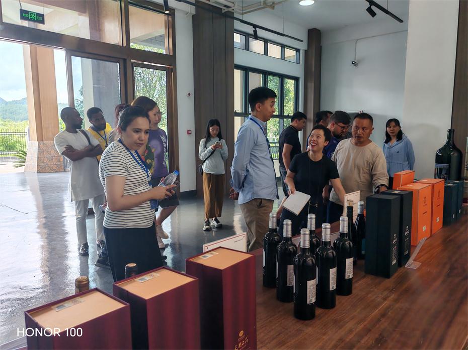7月13日,來至古巴、烏茲別克斯坦、巴拿馬、肯尼亞的國際友人文化訪問團到訪天朝上品葡萄酒莊參觀考察,品鑒天朝上品葡萄酒。