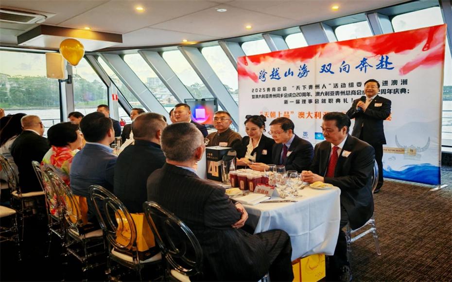 悉尼4月23日電,由天朝上品獨家冠名贊助的2025貴商總會“天下貴州人”活動組委會走進澳洲暨澳大利亞貴州同鄉(xiāng)會成立20周年、澳大利亞貴州總商會成立12周年;新一屆理事會就職典禮;“天朝上品”澳大利亞悉尼之夜晚宴慶典活動在悉尼游輪上舉行。本次活動以“跨越山海 雙向奔赴”為主題,慶典在中澳兩國國歌聲中拉開帷幕,200多位來自各行各業(yè)的嘉賓、華人華僑和貴州鄉(xiāng)友、留學生代表齊聚一堂,共話鄉(xiāng)情,共謀發(fā)展。澳大利亞貴州同鄉(xiāng)會創(chuàng)會會長、澳大利亞貴州總商會會長鄭建華在本次慶典中與天朝上品集團簽約,成為天朝上品澳大利亞海外總經(jīng)銷商。