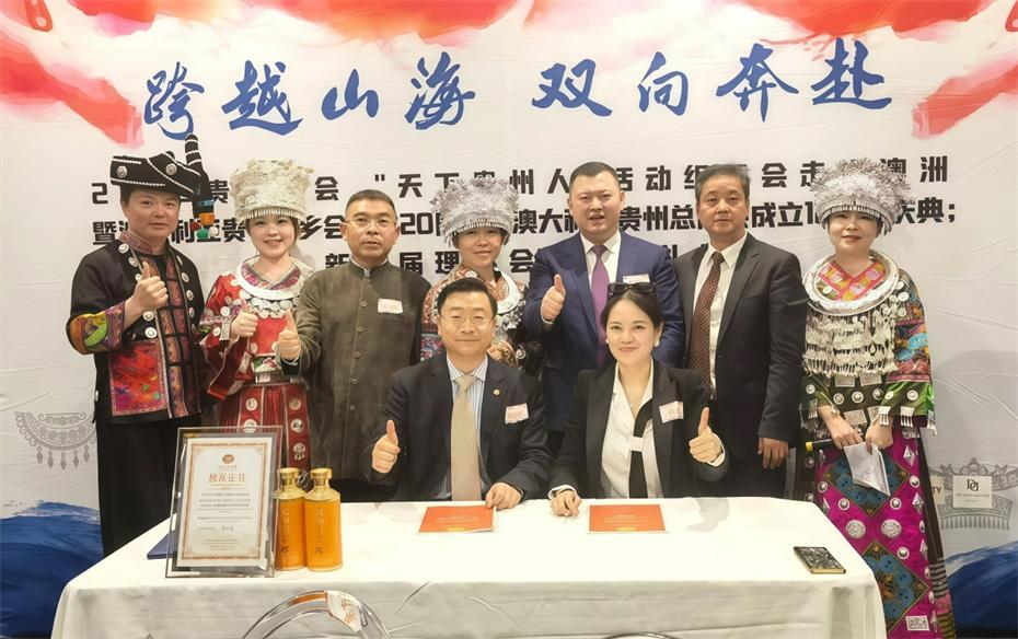 本次慶典的重頭戲——“貴州與澳洲的雙向奔赴”交流分享環(huán)節(jié),更是干貨滿滿。天朝上品作為本次慶典重點推介項目,向澳大利亞企業(yè)家展示了綿柔醬香中國酒業(yè)新團標的魅力;天朝上品作為其代表品牌,是賦能百業(yè),助力貴州蓬勃發(fā)展的新機遇。澳大利亞貴州同鄉(xiāng)會創(chuàng)會會長、澳大利亞貴州商會會長鄭建華現(xiàn)場簽約天朝上品,這不僅是商業(yè)合作的開端,更是黔貨出海、黔澳兩地“雙向奔赴”的有力見證。