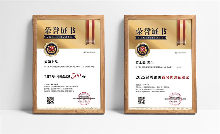 聚勢數(shù)字時代,擘畫品牌愿景。5月24日,由Asiabrand發(fā)起主辦、中國亞洲經(jīng)濟發(fā)展協(xié)會、香港一帶一路總商會等權威機構聯(lián)合主辦的“第11屆品牌強國論壇”在深圳舉行。作為中國品牌發(fā)展的年度盛會,本屆論壇吸引了來自政商學界的百位領軍人物,共同探討數(shù)字經(jīng)濟時代品牌價值的重構路徑。天朝上品集團董事長黃永毅、副總經(jīng)理曾祥坤受邀出席論壇活動。天朝上品品牌榮耀上榜,獲得“2025中國品牌500強”,集團董事長黃永毅榮膺“2025品牌強國百名優(yōu)秀企業(yè)家”稱號。這一殊榮展示了行業(yè)權威對天朝上品品牌實力的認可與支持,同時彰顯了天朝上品的發(fā)展態(tài)勢與巨大的市場潛力。
