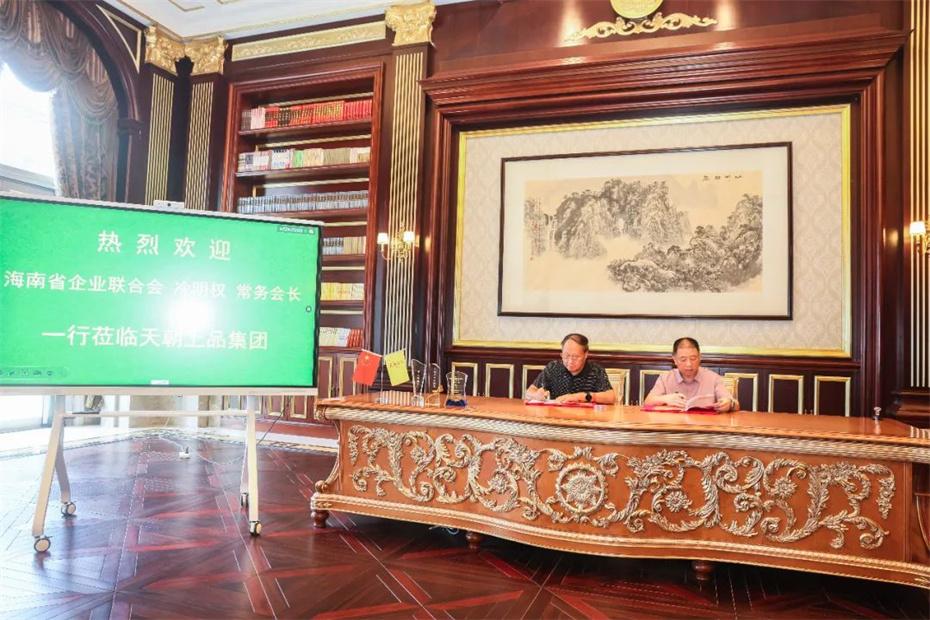 近日,海南省企業聯合會、海南省企業家協會常務會長兼秘書長冷明權一行到訪天朝上品集團考察交流,并在天朝上品集團全球總部與天朝上品集團董事長黃永毅簽約。