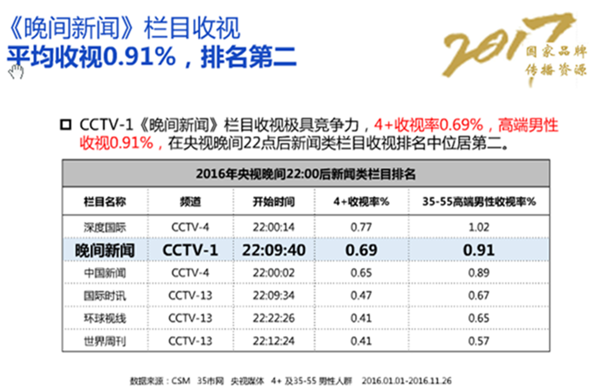 CCTV-1《晚間新聞》欄目收視率