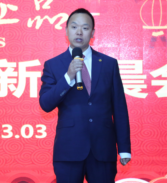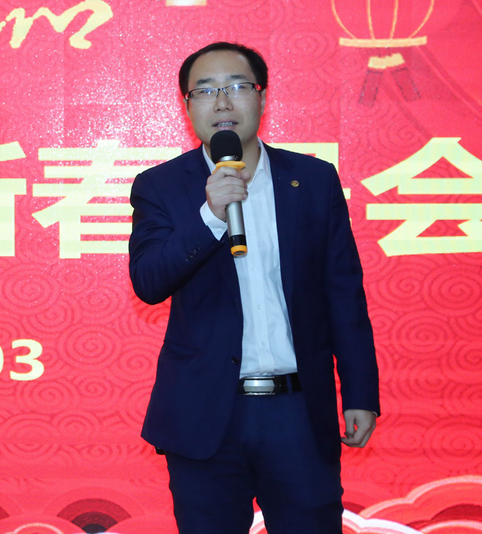 江貽燦副總裁向大家致以新春問候,表示一年之際在于春,一日之家在于晨,一家之計在于和,一生之計在于勤。希望天朝上品的品牌旺、市場旺、人丁旺、財源旺、事業旺,銷售隊伍更加精干,后援隊伍更加敬業,一起服務好全國客戶,確保3000家專賣店項目成功落地,在茅臺集團和茅臺技術開發公司的正確領導下,在楊鳳祥董事長、黃永毅總裁的正確指揮下,熱愛天朝上品這一偉大事業,呵護共同擁有的天朝上品品牌,實現預定的宏觀目標。