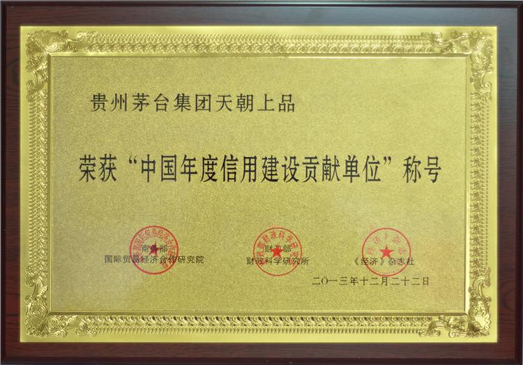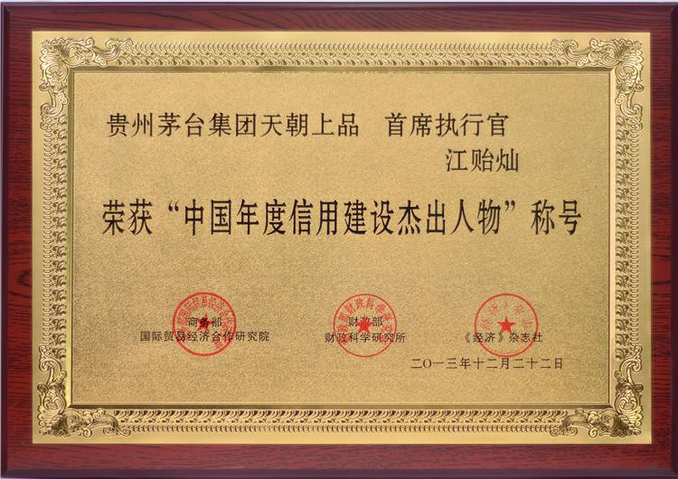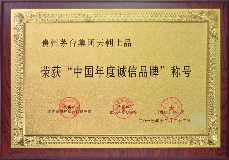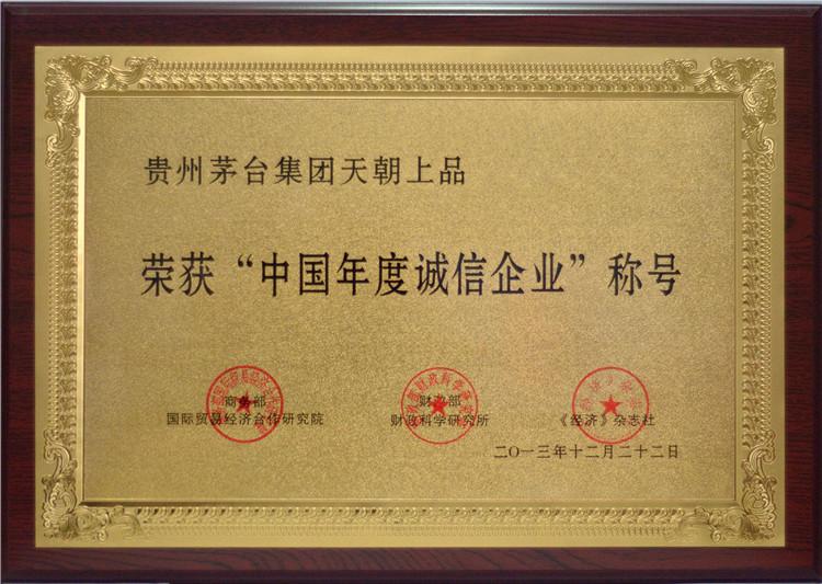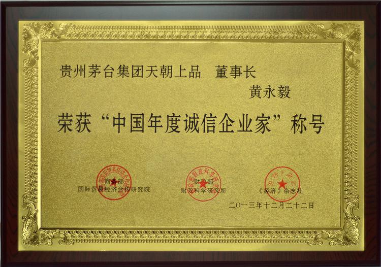2013年12月22日,在第十一屆中國企業信用年會上,天朝上品酒業被再次授予“中國年度誠信企業”、“中國年度誠信品牌”、“中國年度信用建設貢獻單位”殊榮。董事長黃永毅又一次獲得“中國年度誠信企業家”稱號,并與首席執行官江貽燦雙雙獲得“中國年度信用建設杰出人物”稱號。